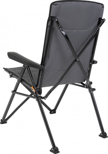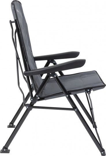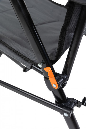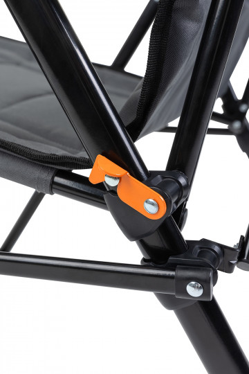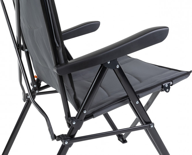 Прочная конструкция с усилением в критических местах со стальной рамой сечением 19 мм выдерживает нагрузку до 150 кг. 3-х позиционная регулировка спинки добавляет комфорта. Крючок для фиксации кресла в каждом положении располагается слева. Широкое комфортное сиденье с мягкой подбивкой спонжем по всему сиденью. Высокая спинка отлично поддерживает спину. Специальные наконечники на ножках, препятствуют проваливанию кресла в землю и песок. Несмотря на большой размер кресло компактно складывается и комплектуется чехлом с лямкой для переноски.