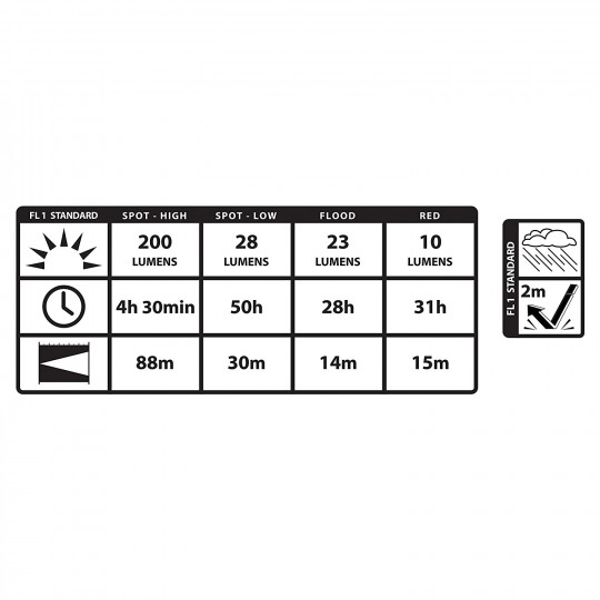 Универсальный фонарь, который можно использовать без рук. Водонепроницаемый (IPX4), ударопрочный (до 2 метров) корпус из поликарбоната и комфортный регулируемый ремешок из высококачественного материала; фонарь можно наклонять под углом 90 градусов для соответствующего направления света. Питание производится тремя сменными батарейками ААА, которые идут в комплекте, и обеспечивают до 50 часов работы фонаря.