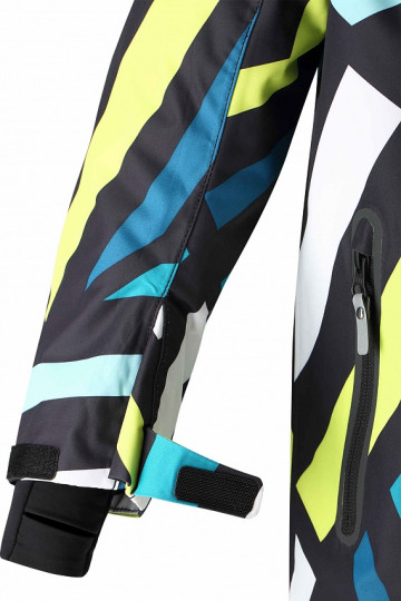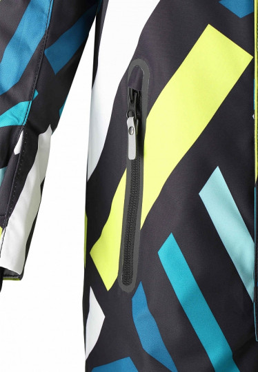 Съемный и регулируемый капюшон защищает от пронизывающего ветра, а еще он безопасен во время игр на свежем воздухе. Кнопки легко отстегиваются, если капюшон случайно за что-нибудь зацепится. Два кармана на молнии, карман для лыжной карты. Материал имеет грязеотталкивающую поверхность, и при этом его можно сушить в сушильной машине. Светоотражающие детали довершают образ.