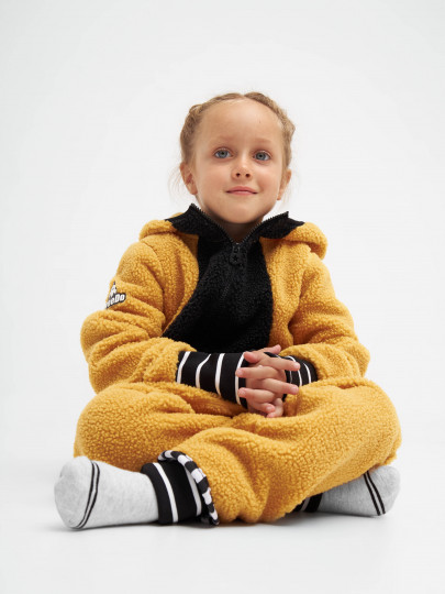 Комбинезон гарантирует максимальную свободу движений и при этом выглядит очень круто. Благодаря непринужденному мешковатому фасону с низкой проймой и удлиненным манжетам на руках и ногах комбинезон идеально подстраивается под возраст и индивидуальные размеры ребенка. Застежка-молния на талии позволяет быстро сходить в туалет, не снимая при этом весь комбинезон. Изготовлено с использованием волокон из переработанных использованных пластиковых бутылок.