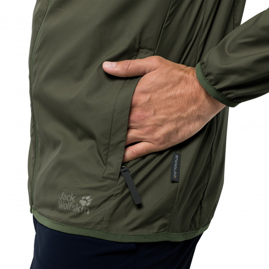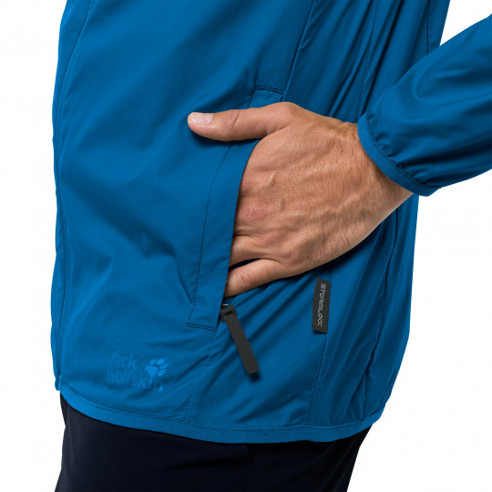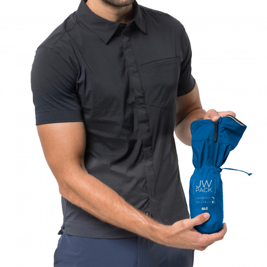 При разработке этой куртки в Jack Wolfskin использовали легкую ткань Flex Shield Airlite (Флекс Шилд Эалайт). Она слегка эластичная, практически невесомая и отлично справляется с легким ветром и ливнями. Куртка аккуратно складывается в свой собственный маленький чехол, поэтому вы можете держать ее наготове в своем рюкзаке.