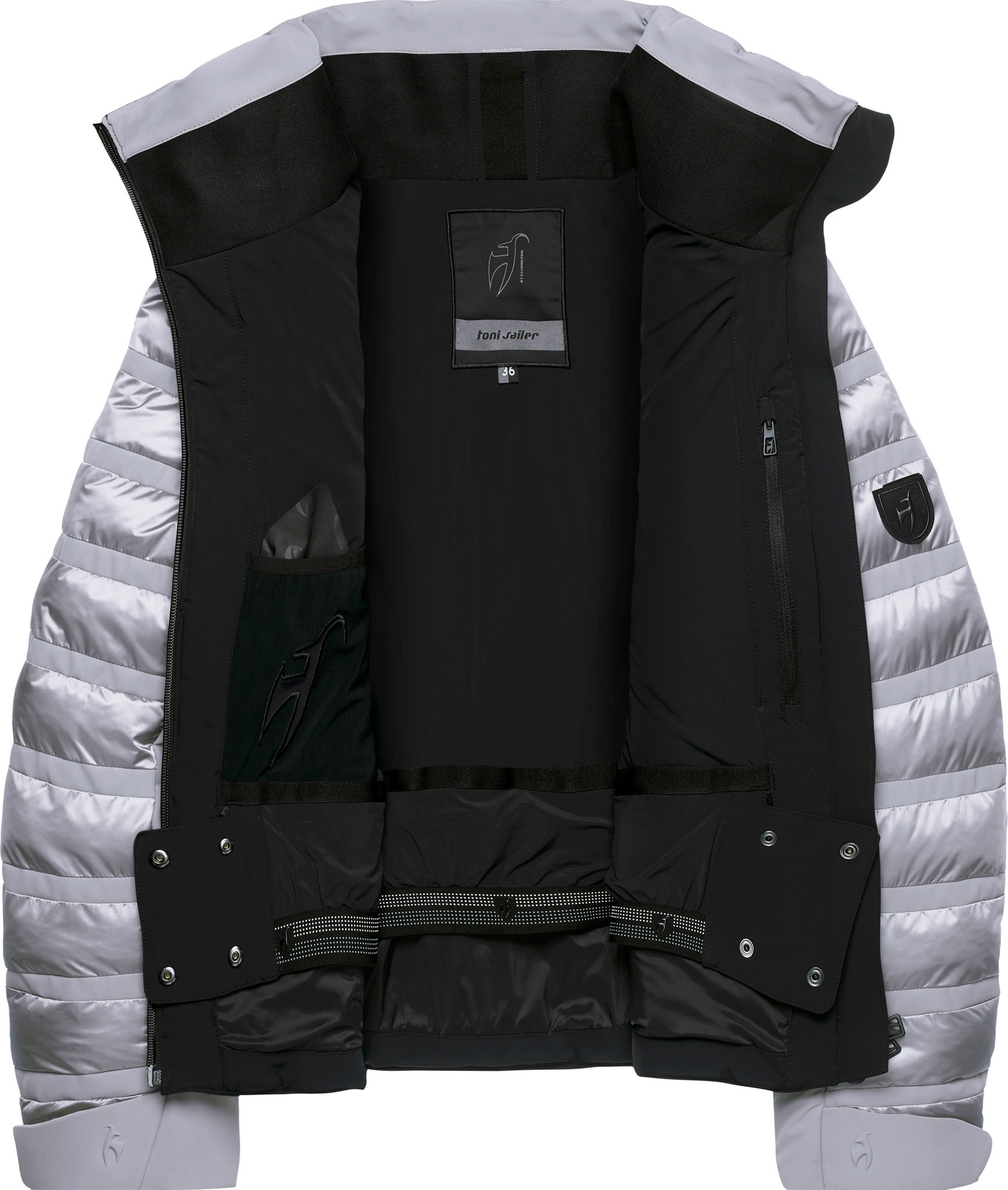 YKK AquaGuard® — чтобы сохранить высокий стандарт качества одежды компания Toni Sailer использует молнии YKK. Водонепроницаемые молнии YKK AquaGuard имеют уникальное полиуретановое покрытие, которое не дает влаге проникать через молнию.