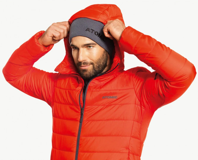Atomic Ripshield PFC free DWR (100% Recycle. PES, 52g/m²); Atomic Thermagrid (95% Polyester / 5% Elastane, 200g/m²)