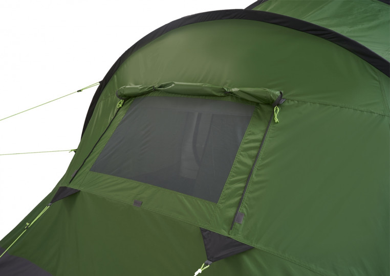 Внутренняя палатка из "дышащего полиэстера" хорошо вентилируется за счет москитных сеток на входных дверях и трехпозиционному вентиляционному окну. Для разделения спальни на две части можно использовать съемную перегородку.