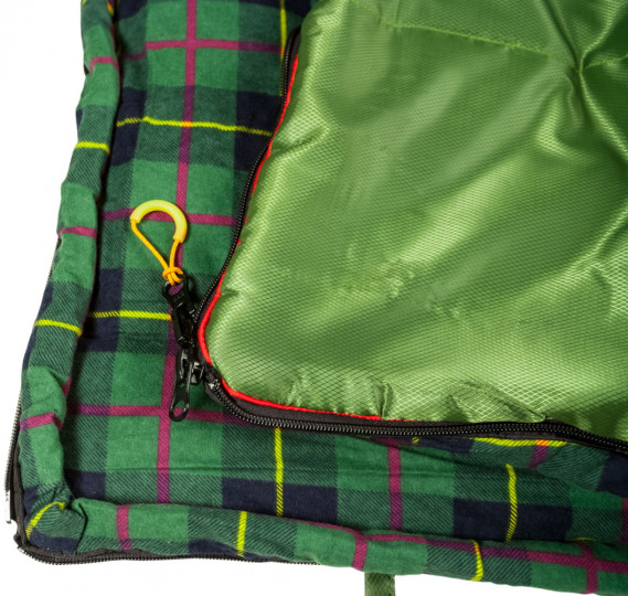 Все, что может коснуться вашей кожи во время сна, выполнено из 100% хлопка. Хлопок легко стирается и не требует особого ухода. С двух сторон от молнии идут мягкие валики из хлопка, которые защитят вас от холодного воздуха, проникающего сквозь молнию. Когда вы превратите спальный мешок в большое одеяло, валик полностью закроет молнию по всему периметру, и вы не поцарапаетесь «зубастой» молнией.
