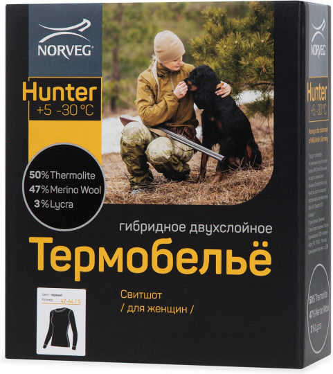 Эффективное утепление, которое не будет заметно под верхней одеждой — с этой задачей справится футболка и кальсоны «Hunter». Термобельё из тончайшей шерсти мериносов в сочетании с инновационным материалом «Thermolite» согреет зимой лучше, чем привычная комбинация «хлопковая футболка+шерстяной свитер». Во время прогулки на природе, длительного пребывания на морозе термобельё сохранит тепло тела, не давая переохладиться и заболеть.