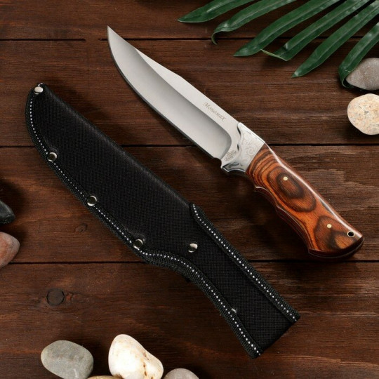 Нож продается в нейлоновом чехле с ремешком для фиксации.